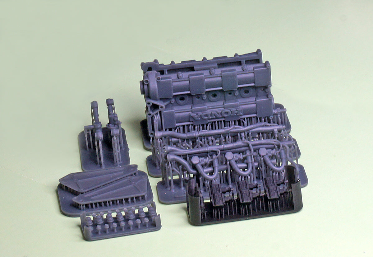 These parts increase the level of detail on the upper part of the Honda RA168E 1.5 V6 turbo engine.