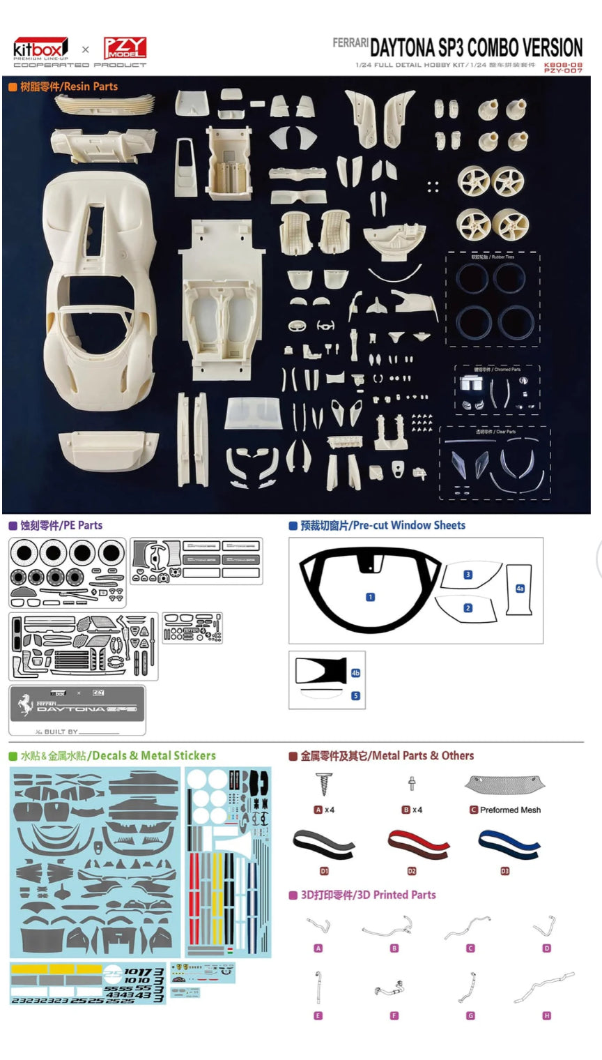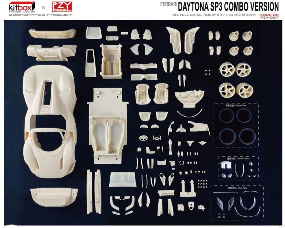 This is the Pzy Kit Box Model of the Ferrari Daytona SP3 Combo Version,with exclusive details or special features.