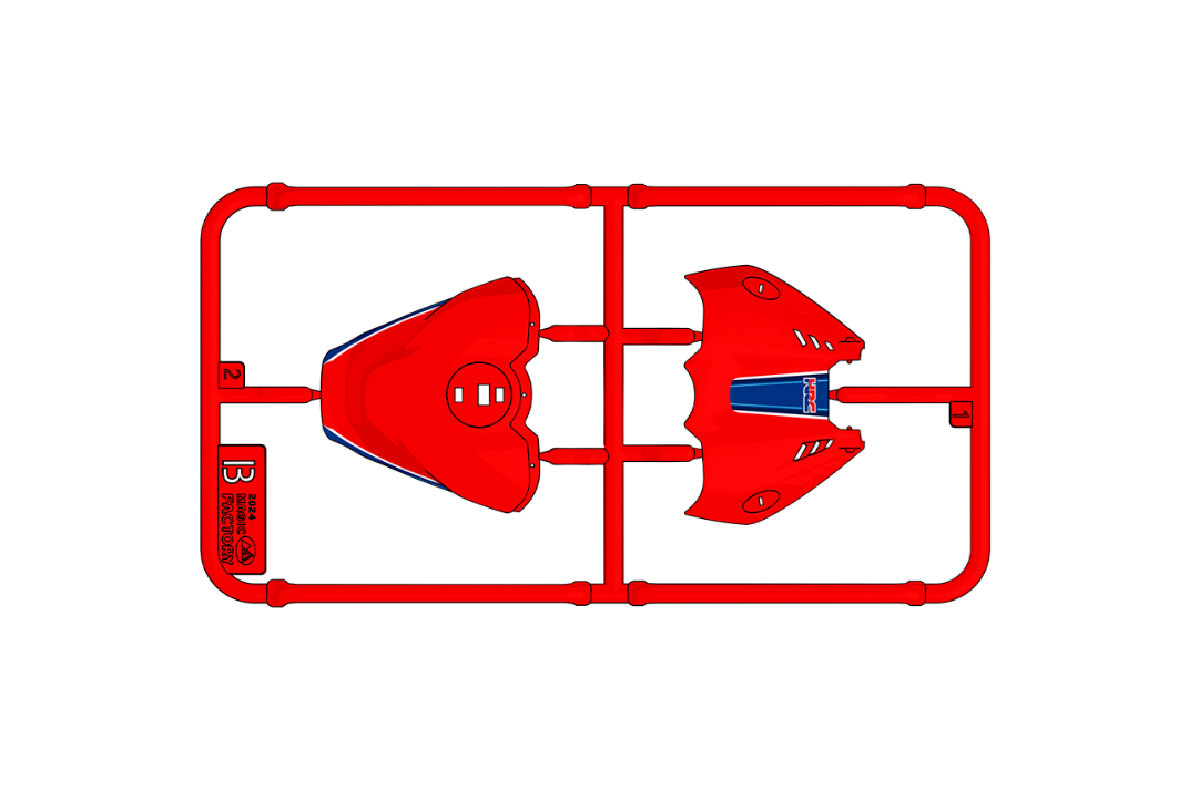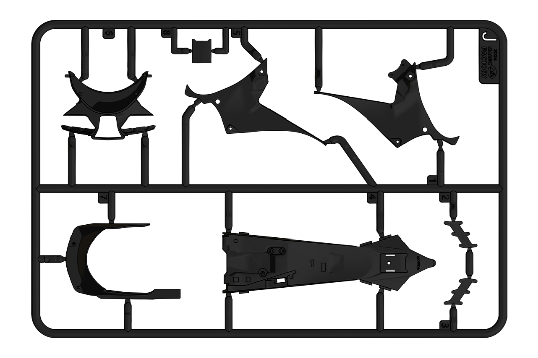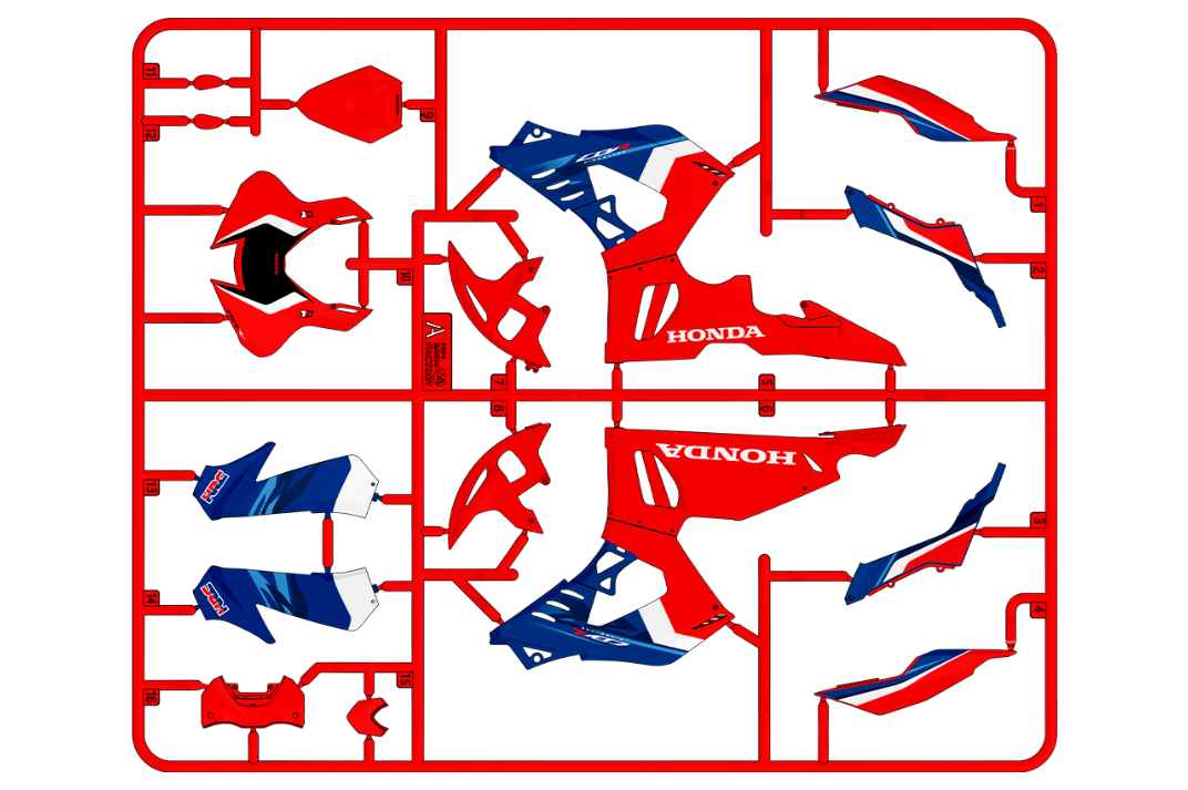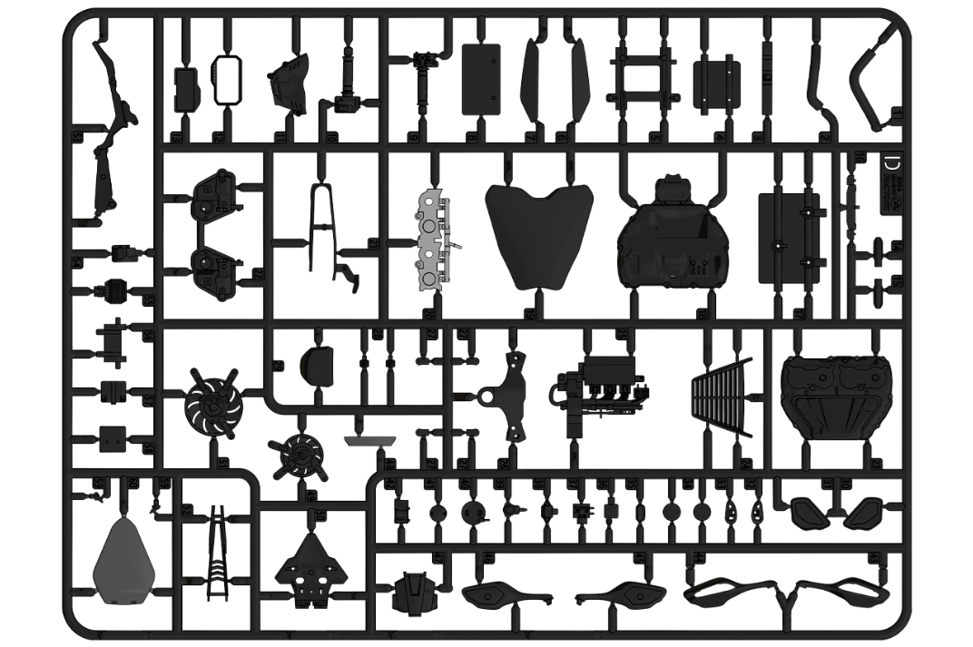 The kit comes with many of its parts pre-painted, such as the fairing, and the anchoring system of the parts allows them to be assembled without the need for glue.