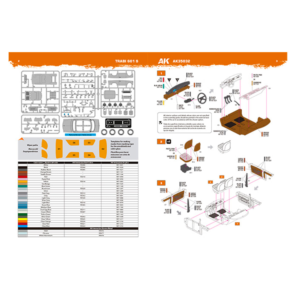 The reference AK35032 represents the most common limousine variant as built in the second half of the 1980s, and features some optional elements fitted to the 601 S version such as the fog and reverse lights. Two types of emergency lights attached to the roof are also included. The decal sheet contains markings for six different vehicles, including the one featured in the popular German comedy movie from 1991.