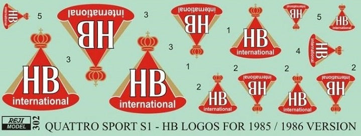Decals with the HB International logos needed to complete the livery of the Beemax kit.