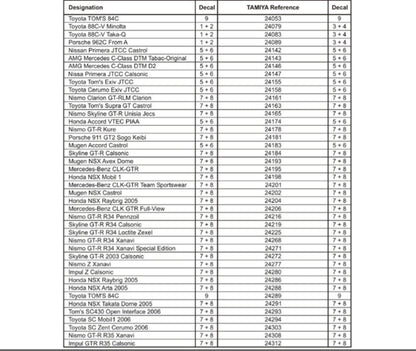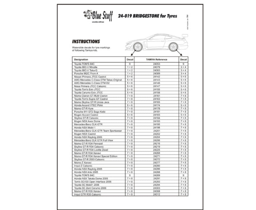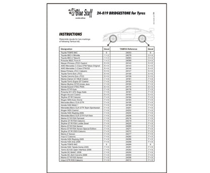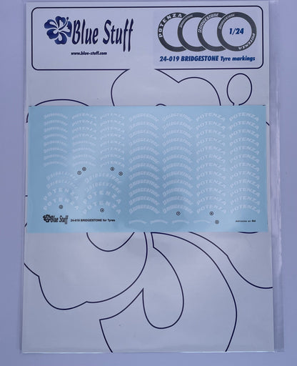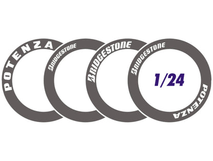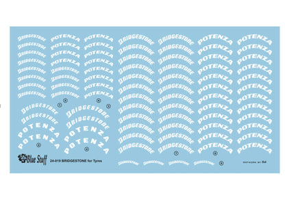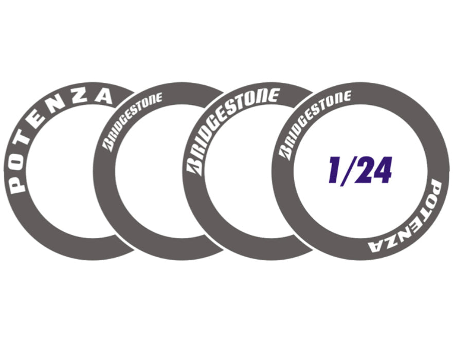 Decal Set with the Bridgestone Potenza logos in different sizes, to be used on 1/24 scale tires.
