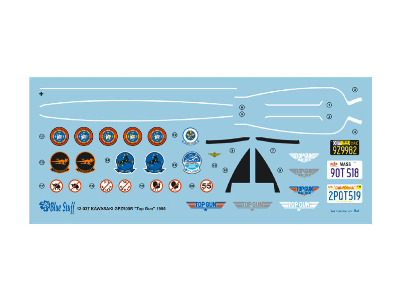 Decal set to make the Top Gun,Kawasaki GPZ900 ride by Tom Cruise.