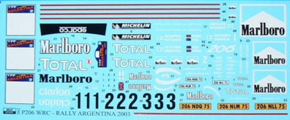 DECALS PEUGEOT 206 WRC CLARION TOTAL MARLBORO - RALLY ARGENTINA 2003