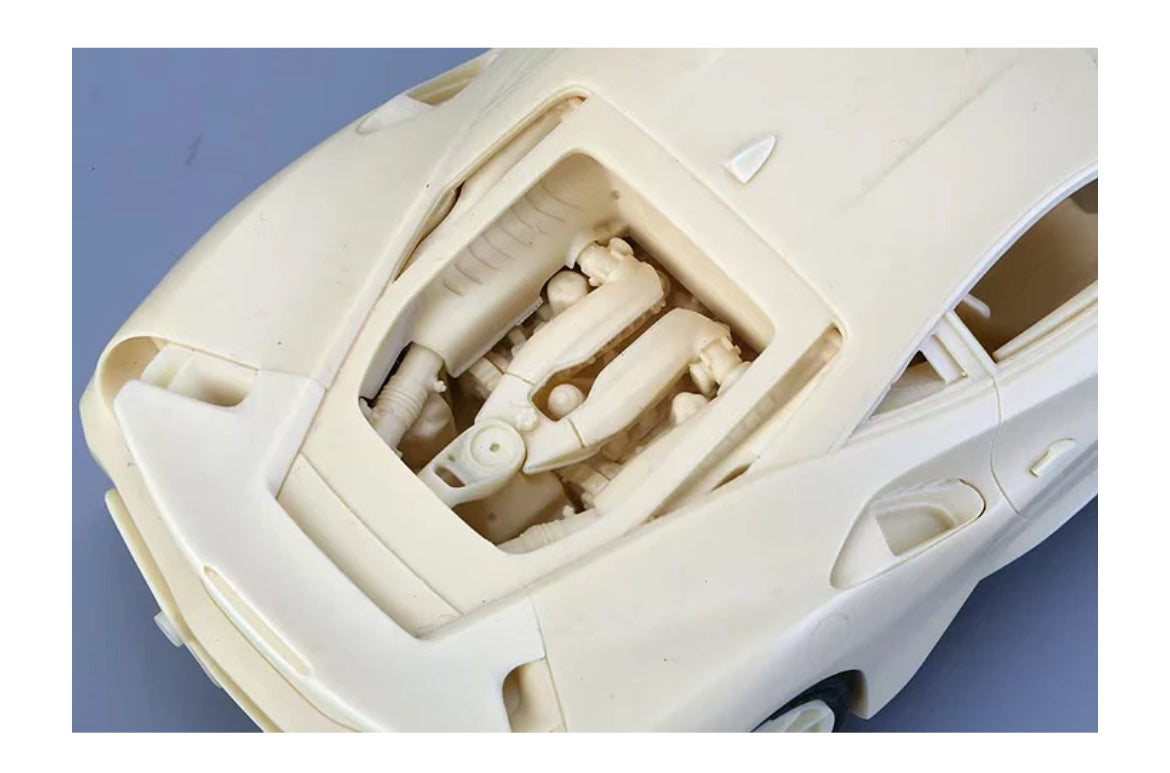 This kit faithfully captures the aggressive aerodynamic lines, sophisticated body details, and a richly detailed interior.