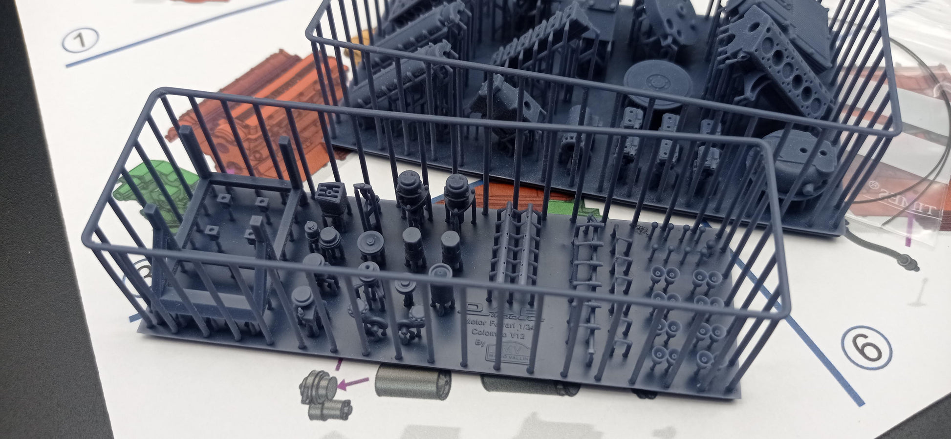 Manufactured using 3D printing with high-quality resin, the engine was initially designed to be mounted in the MFH scale model kit of the Ferrari 250 GT Lusso Competizione at 1/24 scale, but since not everyone has that kit, DAB decided to adapted it to be displayed externally mounted on a support trolley included among the parts you will find in the box.
