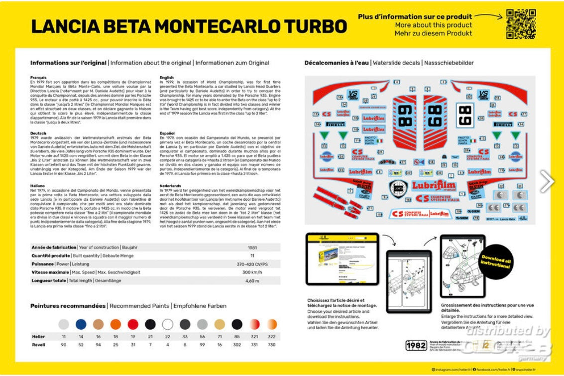 Additional details for the Lancia Beta Montecarlo Turbo car scale model kit: Manufactured by Heller in 1/24 scale with reference 80741.