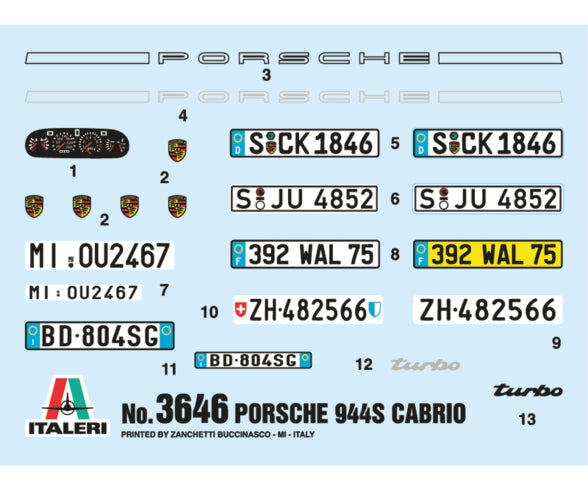 Additional details for the Porsche 944 S cabrio car scale model kit: