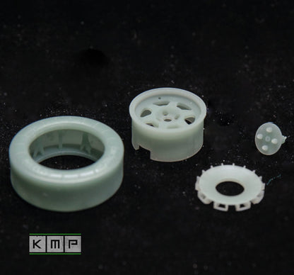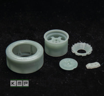 2x front Dymag rims (slotted to hop on the kit's suspension without modications, but will not be possible to rotate)
