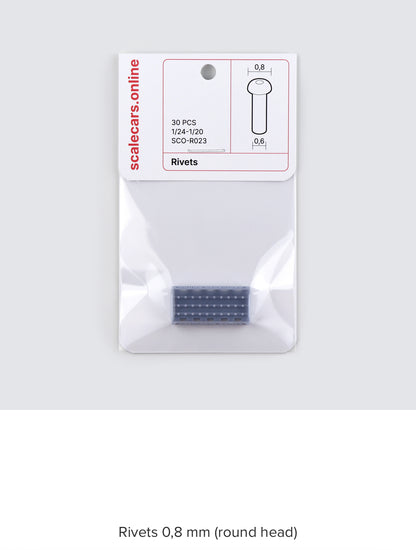 The set includes 30 pieces of resin rivets with round head. Dedicated to 1/24-1/20 scale.