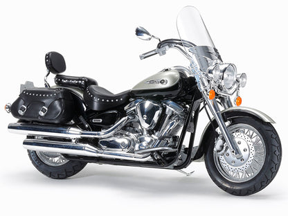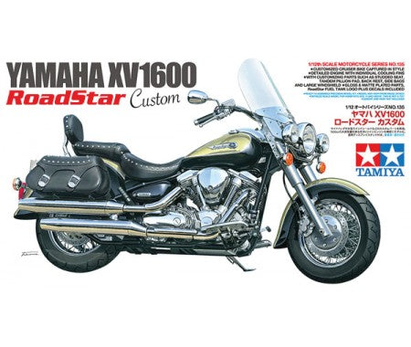 Additional details for the Yamaha XV1600 Road Star Custom motorbike scale model kit: Manufactured by Tamiya in 1/12 scale with reference TAM14135.