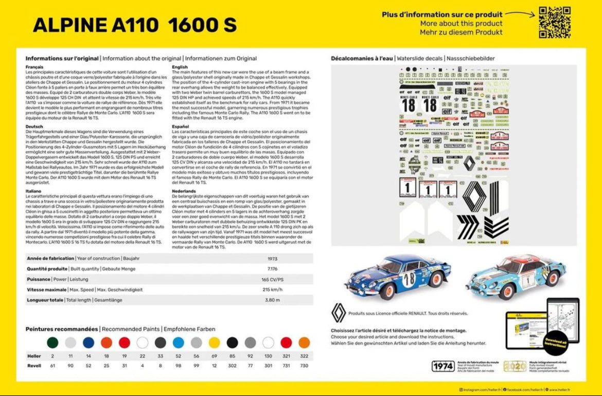 Additional details for the Alpine Renault A110 1600 S car scale model kit: